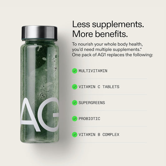 AG1 Athletic Greens Greens Powder Supplement, Improve Gut Health, Multivitamin, Probiotic, Gluten Free, Vegan and Keto Friendly, 75 Vitamins (Travel Packs, 15 Count) - Classic Formula